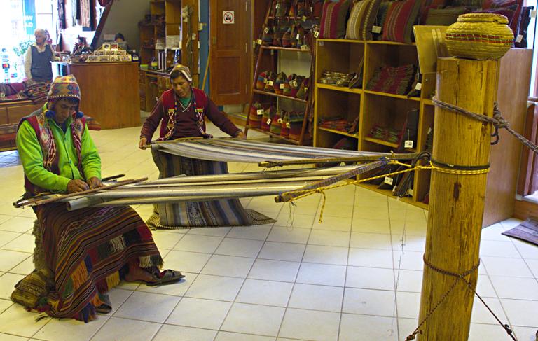 We found a local artisans' shop where we purchased some nice woolen goods, and watched a demonstration of traditional Peruvian weaving. I was particularly fascinated by how they spun wool into yarn with just their hands.