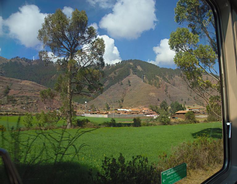 The valley where Cusco is situated starts out relatively open, with farms in the bottomland; but soon it narrows and then there is room for nothing but the river. The train goes through a number a tunnels along the way, not surprising given the steepness of the valley it is going down.