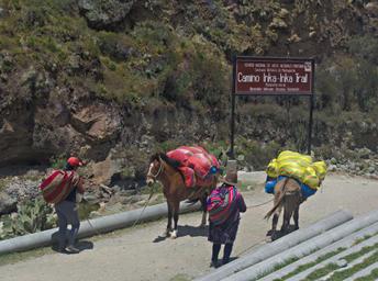 As we got closer to Aguas Calientes we saw pieces of the Inca Trail. Some locals were just setting out hauling baggage for people doing the hike.