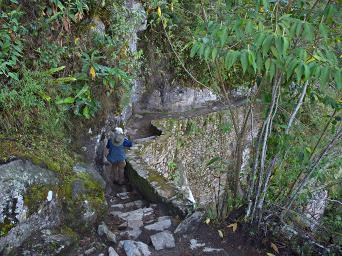Once we got to the site of Machu Picchu, we opted to first head to the Inca drawbridge. The trail is uphill from the main ruins and affords a nice view of the ruins in the early morning light, and we wanted to see it before it was too crowded.