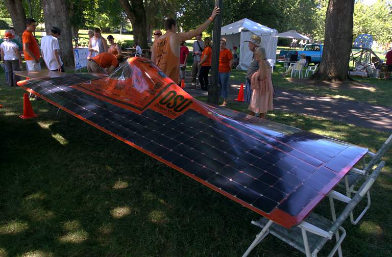 While out in Oregon for Dona's nephew's wedding celebration, we stayed with some friends in Corvallis. The weekend happened to correspond with the town's da Vinci Days summer festival. The event features a canine frisbee contest, an electric car race, demonstration and educational booths about alternative technology and ways of life, and the big attraction for us, the "Graand Kinetic Challenge" (yes, that's how it's spelled). According to the official website: