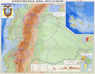 On the plane we started looking at the map and re-reading Ram's messages about our itinerary to try to figure out how to meet up with them. Since we were arriving late, we would be spending the night in Quito. What mattered was where would the group be the next day, and where would they be the next night? As luck would have it, the next night was the one night where we didn't know where they would be. All we had was the name of a town. It was a little town in eastern Ecuador, on the lower slopes of the Andes as they fall into the Amazon basin. I figured it can't be too big, and in the worst case we would just show up in town and look around for some gringos. But during the day they were starting out at a place called "Angel Pas". That was a guy's ranch. We had vague directions for how to get there. In any case, we knew what roads got us in the general vicinity. Quito is long and skinny, running North to South. Every Latin American country has good bus service, so I figured we would just catch a bus early in the morning. We had a guide book of some sort that told us there were two bus stations, one in the north end of town and one in the south. There is only one main road to the area where Angel Pas was located, and it leaves from the north.