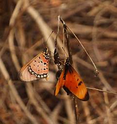 We saw a couple of butterflies on a dead plant stalk, and then a whole bunch of them. I suspect it was some sort of mating orgy going on.