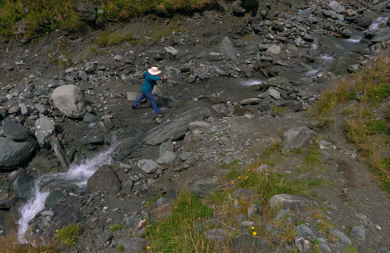 I over-ruled Dona and claimed we should hike up the river towards the Mt. Aspiring hut. We passed by the bridge and headed up the river.